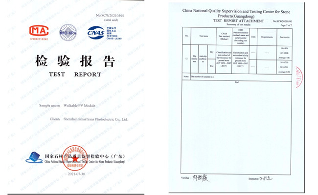 Solar pavement products are tested by the independent third-party testing agency and have passed: